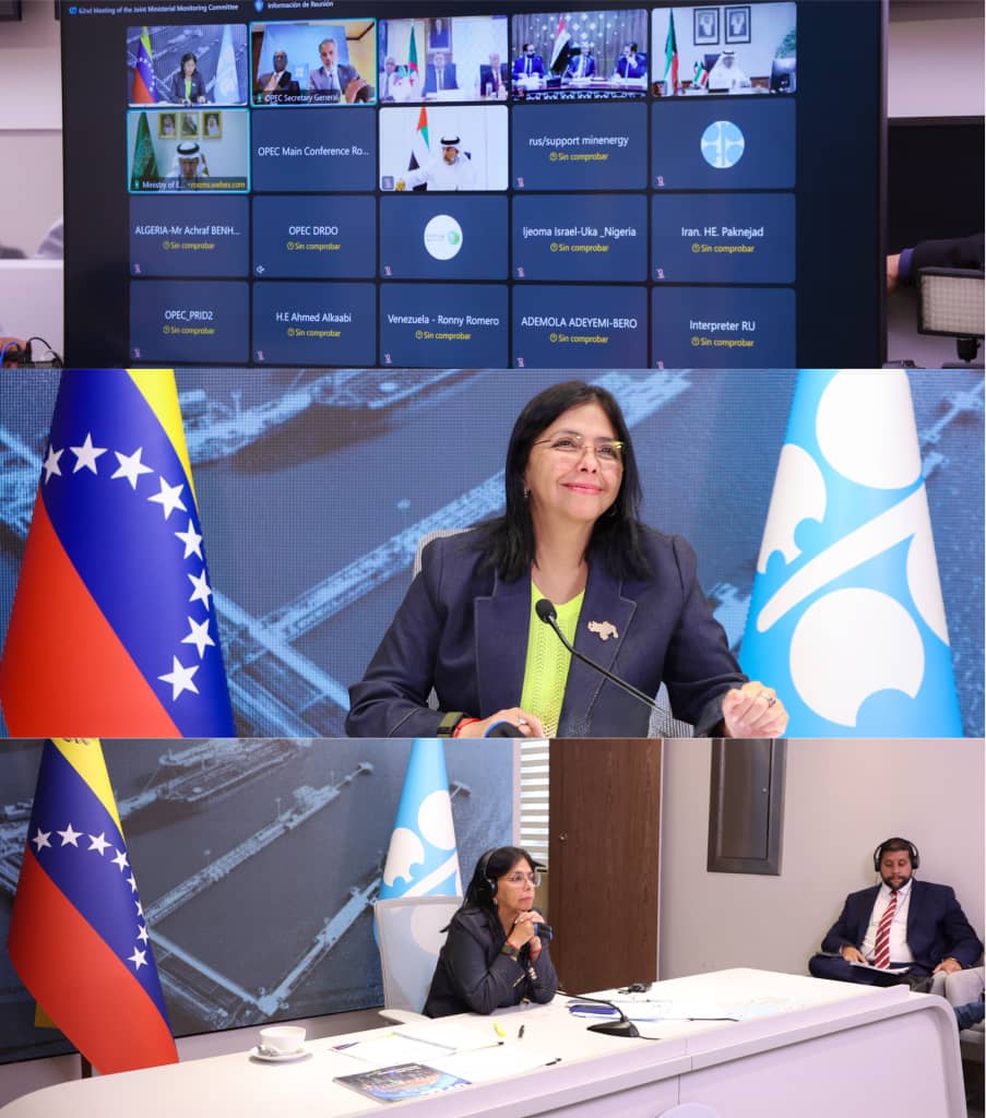 Caracas, 01 de octubre de 2025-. La ministra del Poder Popular de Hidrocarburos, Delcy Rodríguez, en nombre del gobierno del presidente Nicolás Maduro, participó en la 62ª Reunión del Comité Ministerial de Monitoreo Conjunto (JMMC) de la OPEP+, respaldando las disposiciones de la organización.